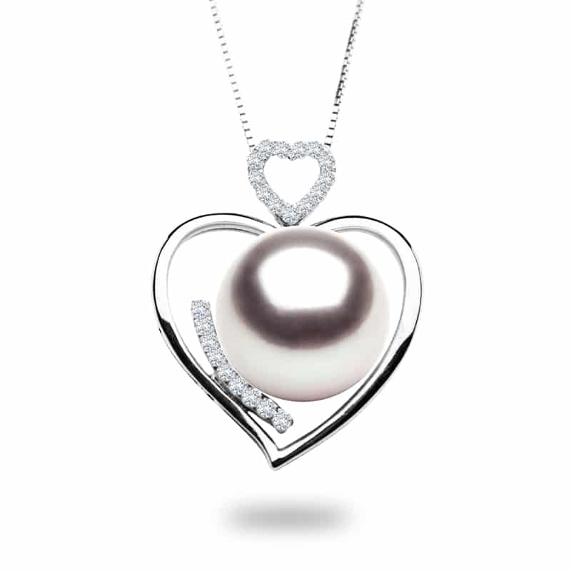 Inspired by the double heart, this elegant pendant features a 12.4mm white South Sea Pearl in an 18k white Gold setting, with round cut diamonds.