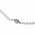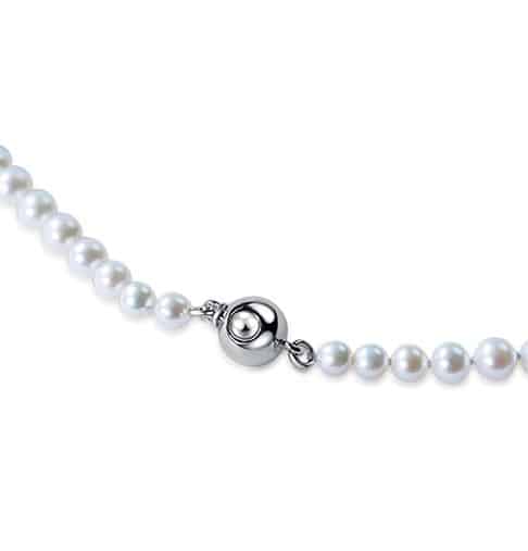 The beautiful strand presented here is composed of 4mm – 9mm graduated white freshwater pearls. Each pearl shape is near round with a “High” grade luster and clean surface. This pearl necklace is white in colour and comes with a beautiful sterling silver clasp.